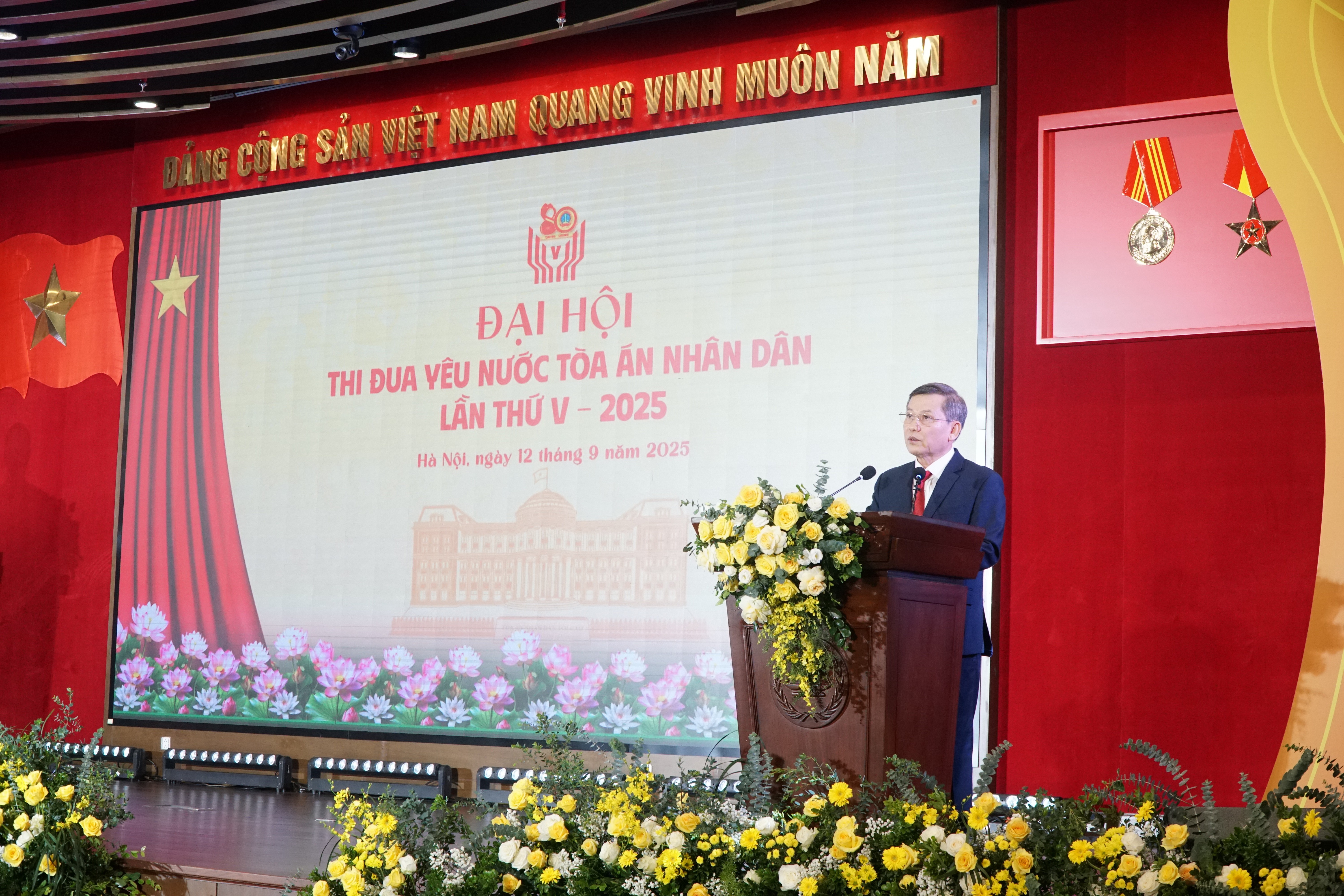 Phát biểu khai mạc Đại hội, Chánh án Tòa án nhân dân tối cao Lê Minh Trí cho biết, trong không khí phấn khởi kỷ niệm 80 năm Cách mạng Tháng Tám thành công và Quốc khánh 2/9, 80 năm Ngày truyền thống Tòa án nhân dân; đồng thời, hòa cùng khí thế thi đua sôi nổi của toàn Đảng, toàn quân và toàn dân lập nhiều thành tích xuất sắc hướng tới Đại hội đại biểu toàn quốc lần thứ XIV của Đảng, Tòa án nhân dân tối cao tổ chức Đại hội thi đua yêu nước Tòa án nhân dân lần thứ 5 của ngành.
