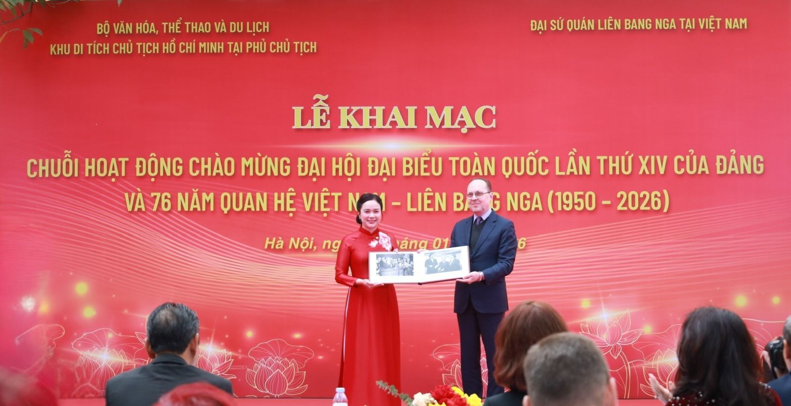 (ĐCSVN) - Sáng 14/1, Khu Di tích Chủ tịch Hồ Chí Minh tại Phủ Chủ tịch phối hợp với Đại sứ quán Liên bang Nga tại Việt Nam tổ chức khai mạc chuỗi hoạt động chào mừng Đại hội đại biểu toàn quốc lần thứ XIV của Đảng và kỷ niệm 76 năm thiết lập quan hệ ngoại giao Việt Nam - Liên bang Nga (1950 – 2026).