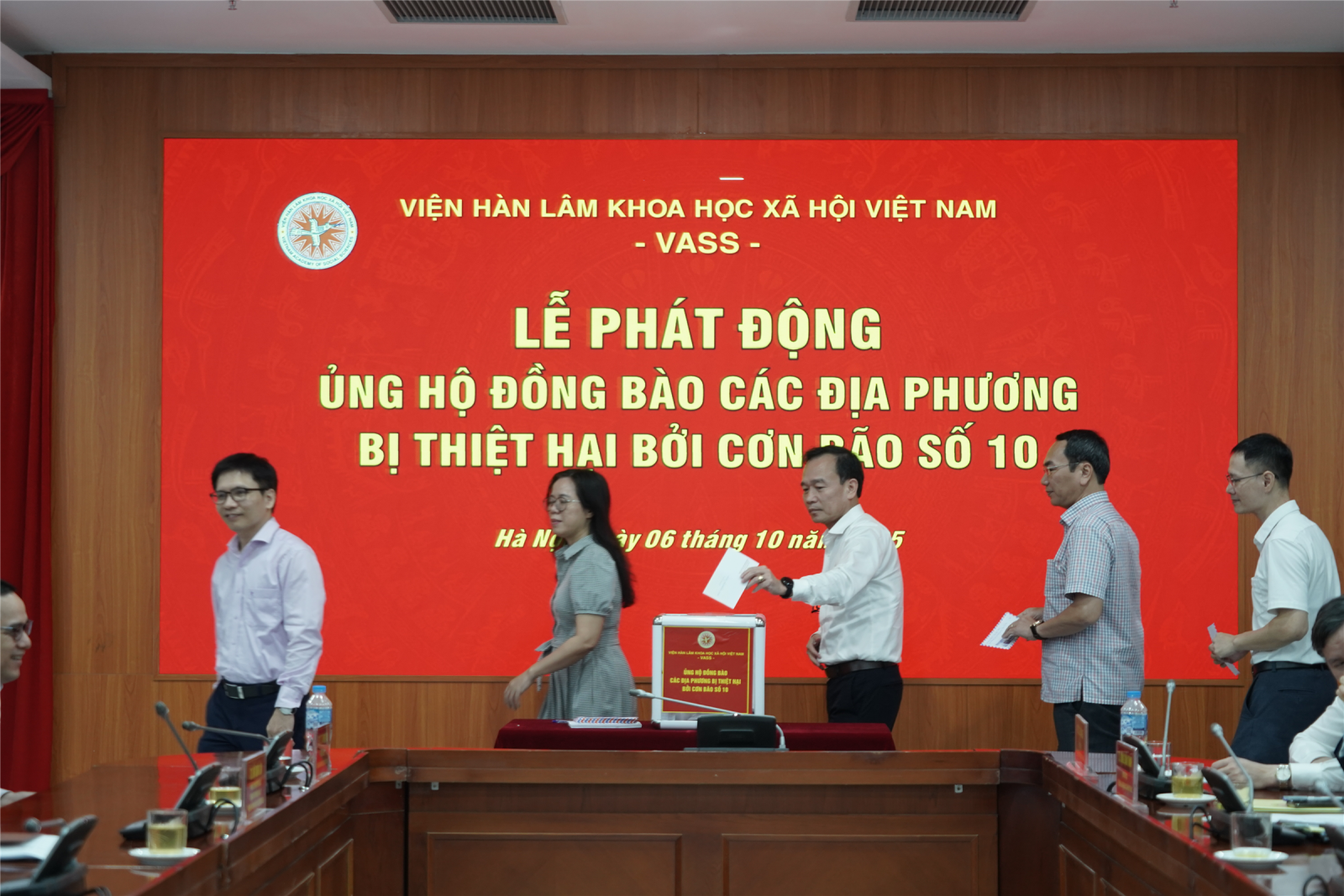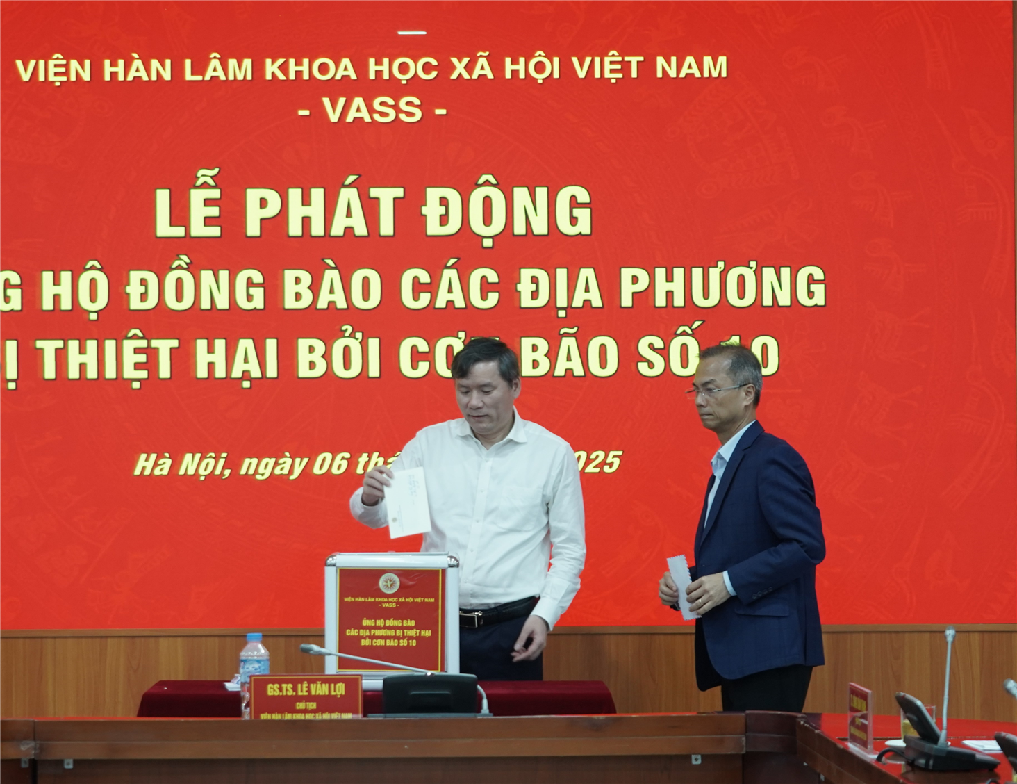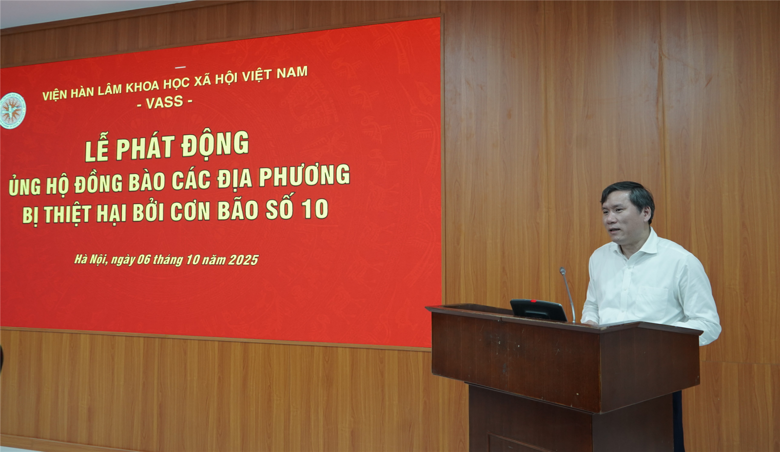 Phát biểu tại Lễ Phát động, GS.TS Lê Văn Lợi, Bí thư Đảng ủy, Chủ tịch Viện Hàn lâm Khoa học xã hội Việt Nam cho biết, ngay sau khi nắm bắt tình hình thiệt hại do bão số 10 gây ra, Ban Chấp hành Đảng bộ Viện Hàn lâm đã thống nhất chủ trương tổ chức vận động quyên góp, ủng hộ đồng bào vùng bị ảnh hưởng. Việc tổ chức Lễ phát động sáng 6/10 nhằm hưởng ứng kịp thời lời kêu gọi của Ủy ban Trung ương Mặt trận Tổ quốc Việt Nam, đồng thời thể hiện tinh thần “đúng ý Đảng, hợp lòng dân”.