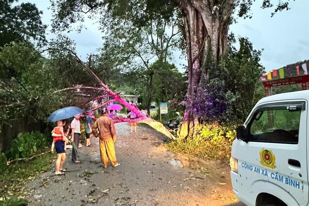 | Công an xã Cầm Bình nhanh chóng phối hợp với các lực lượng chức năng giải tỏa các điểm cây đổ do gió mạnh vào tối 19/7 gây ảnh hưởng đến trật tự an toàn giao thông. |