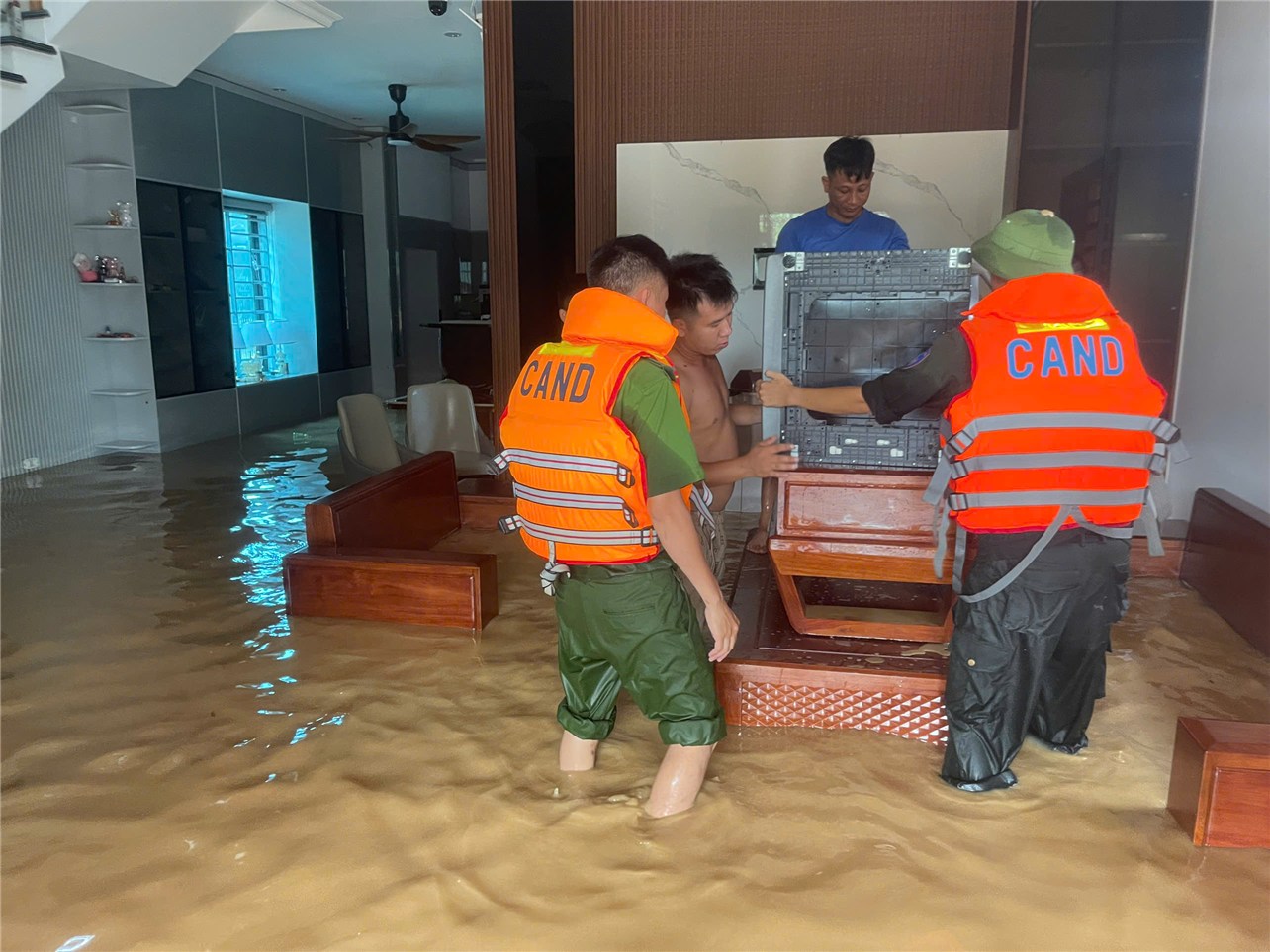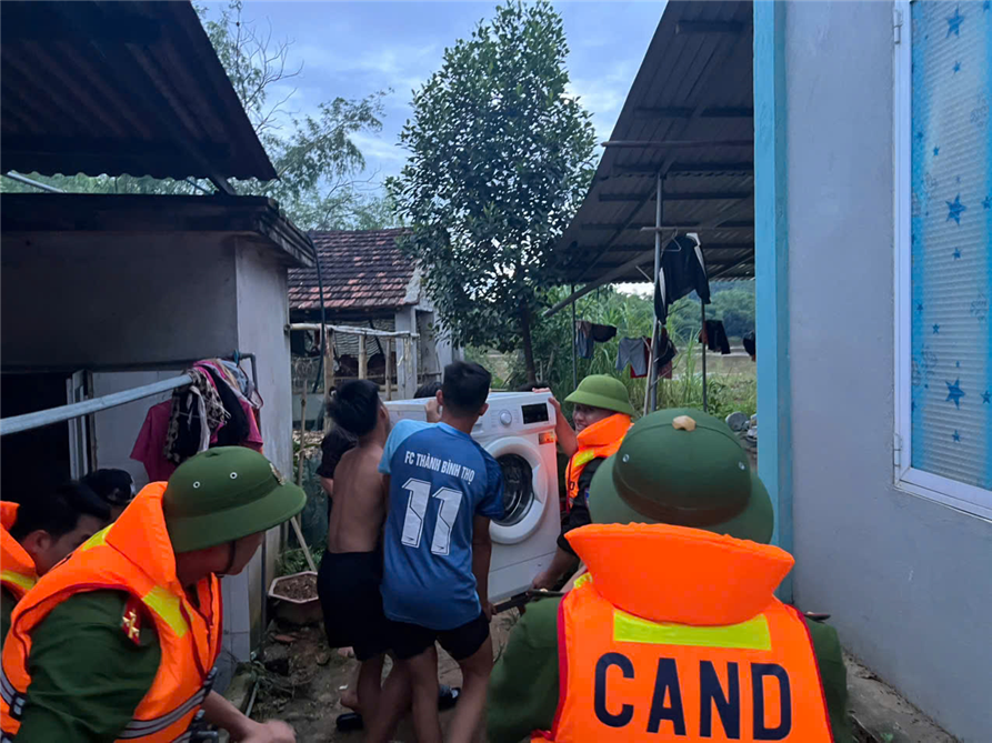 | | Tổ công tác Công an tỉnh phối hợp với Công an xã Anh Sơn hỗ trợ người dân di dời tài sản đến nơi an toàn. | |