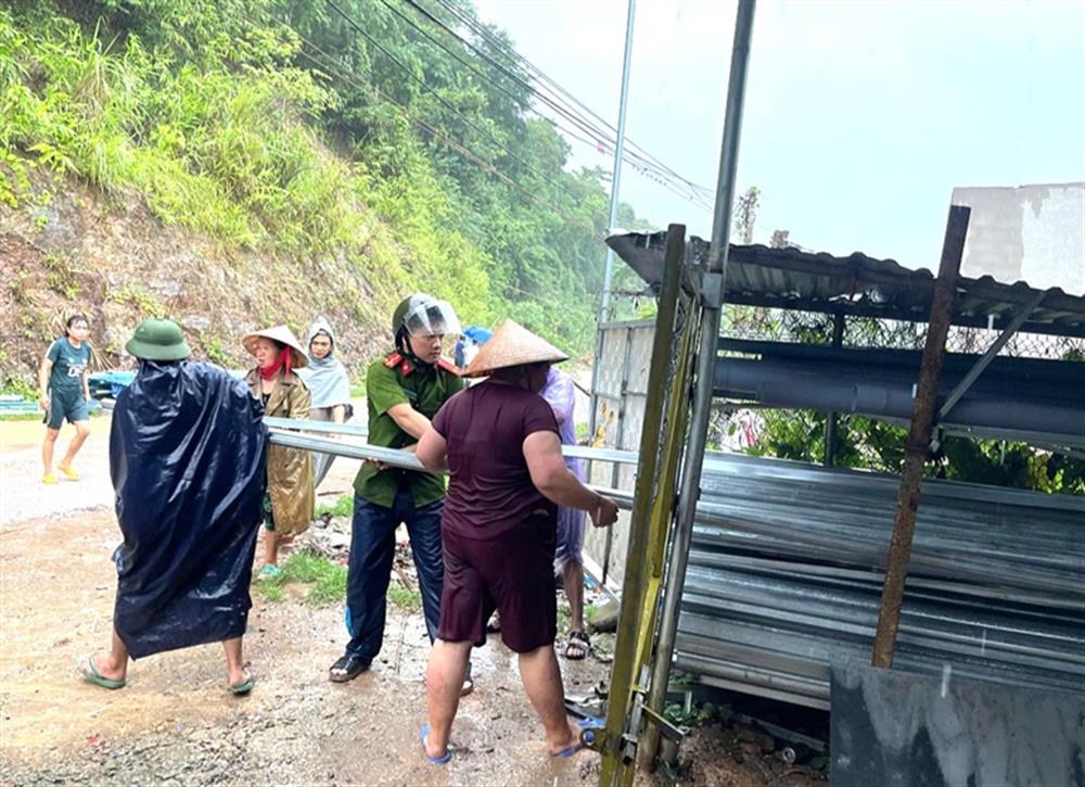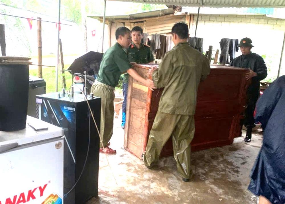 *Tại xã Nhôn Mai, Công an xã nhanh chóng có mặt tại hiện trường khẩn trương hỗ trợ người dân tháo nhà cửa, di dời toàn bộ tài sản đến nơi ở an toàn, hạn chế thiệt hại do thiên tai gây ra.