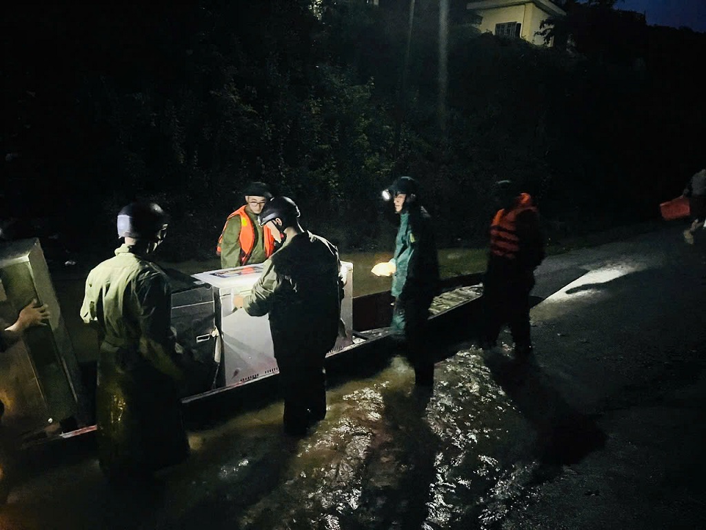 | | Công an xã Tam Thái chèo thuyền tiếp tế lương thực, nước uống đến tận tay các hộ dân di dời và cô lập. |  |  |  | | Công an xã Lượng Minh hỗ trợ di chuyển người và tài sản đến vùng an toàn. |  | | Công an xã Yên Hòa tuyên truyền người dân không ra sông vớt củi khi nước lũ dâng cao. | | | | | |