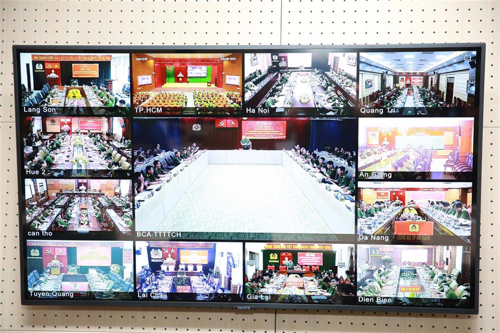 | Hội nghị được tổ chức trực tuyến từ Hội trường Bộ Công an đến Công an các địa phương. |