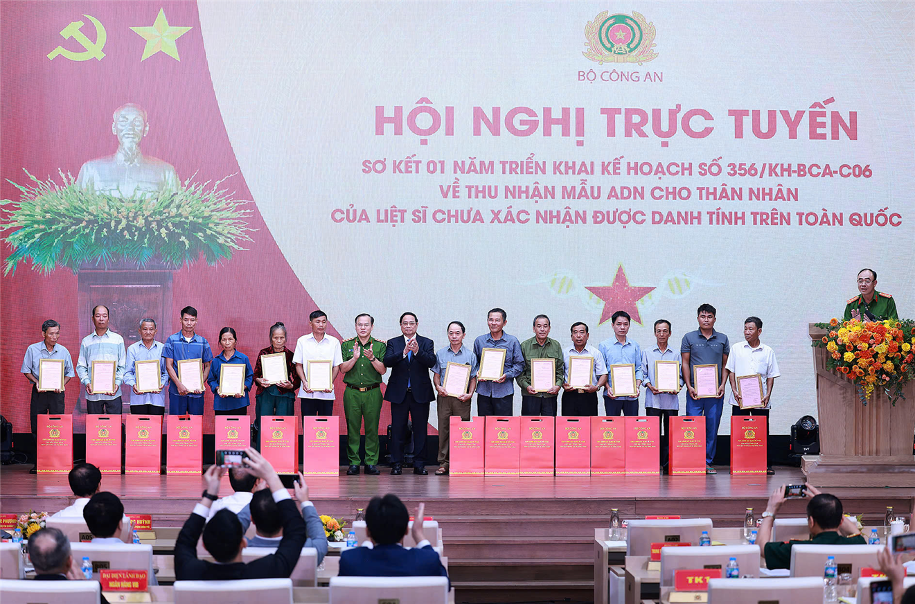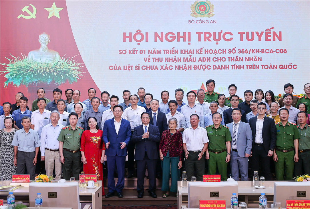 Biểu dương tinh thần chủ động của Bộ Công an cũng như sự phối hợp, vào cuộc của các bộ, ngành, địa phương và toàn hệ thống chính trị trong công tác thu nhận mẫu ADN của thân nhân gia đình các liệt sĩ để xác minh danh tính những liệt sĩ chưa biết tên, Thủ tướng nhấn mạnh: Đảng, Nhà nước cũng xác định công tác tìm kiếm, quy tập hài cốt liệt sĩ và xác minh danh tính liệt sĩ là nhiệm vụ quan trọng, thiêng liêng của cả hệ thống chính trị và toàn xã hội, cần tiếp tục đầu tư bằng tâm huyết, bằng trí tuệ, công nghệ và cả lòng nhân ái, sự cần cù, cống hiến, chung tay, góp sức, hỗ trợ của người dân, của doanh nghiệp và các cơ quan chức năng.