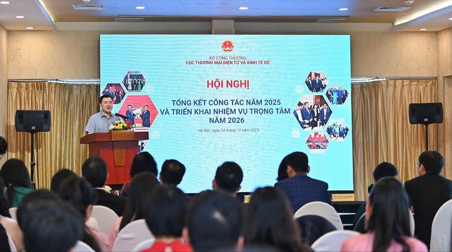 Sáng 24/12, tại Hà Nội, Cục Thương mại điện tử và Kinh tế số (Bộ Công Thương) tổ chức Hội nghị Tổng kết công tác năm 2025 và triển khai nhiệm vụ trọng tâm năm 2026.