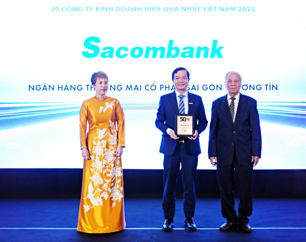 Ngân hàng Sacombank tiếp tục ghi danh trong top 50 công ty kinh doanh hiệu quả nhất Việt Nam năm 2025