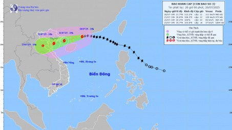 Hiện nay, bão số 3 đang hoạt động trên khu vực Bắc Biển Đông, cường độ rất mạnh (cấp 12, giật cấp 15). Đây là cơn bão mạnh, di chuyển nhanh. Theo dự báo của Trung tâm Dự báo Khí tượng thủy văn quốc gia, bão sẽ ảnh hưởng đến Bắc Bộ và Bắc Trung Bộ từ chiều tối ngày 21 tháng 7 năm 2025, gây gió mạnh, mưa lớn, nguy cơ cao xảy ra lũ ống, lũ quét, sạt lở đất ở trung du và miền núi, ngập lụt tại các vùng thấp trũng và đô thị.