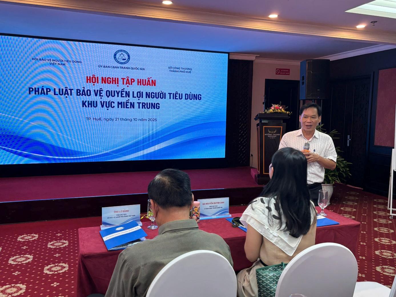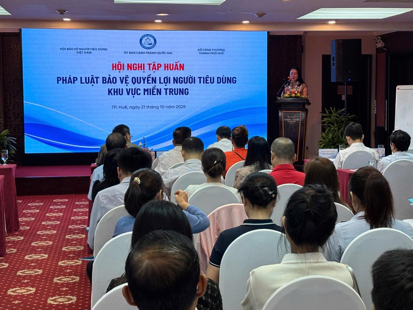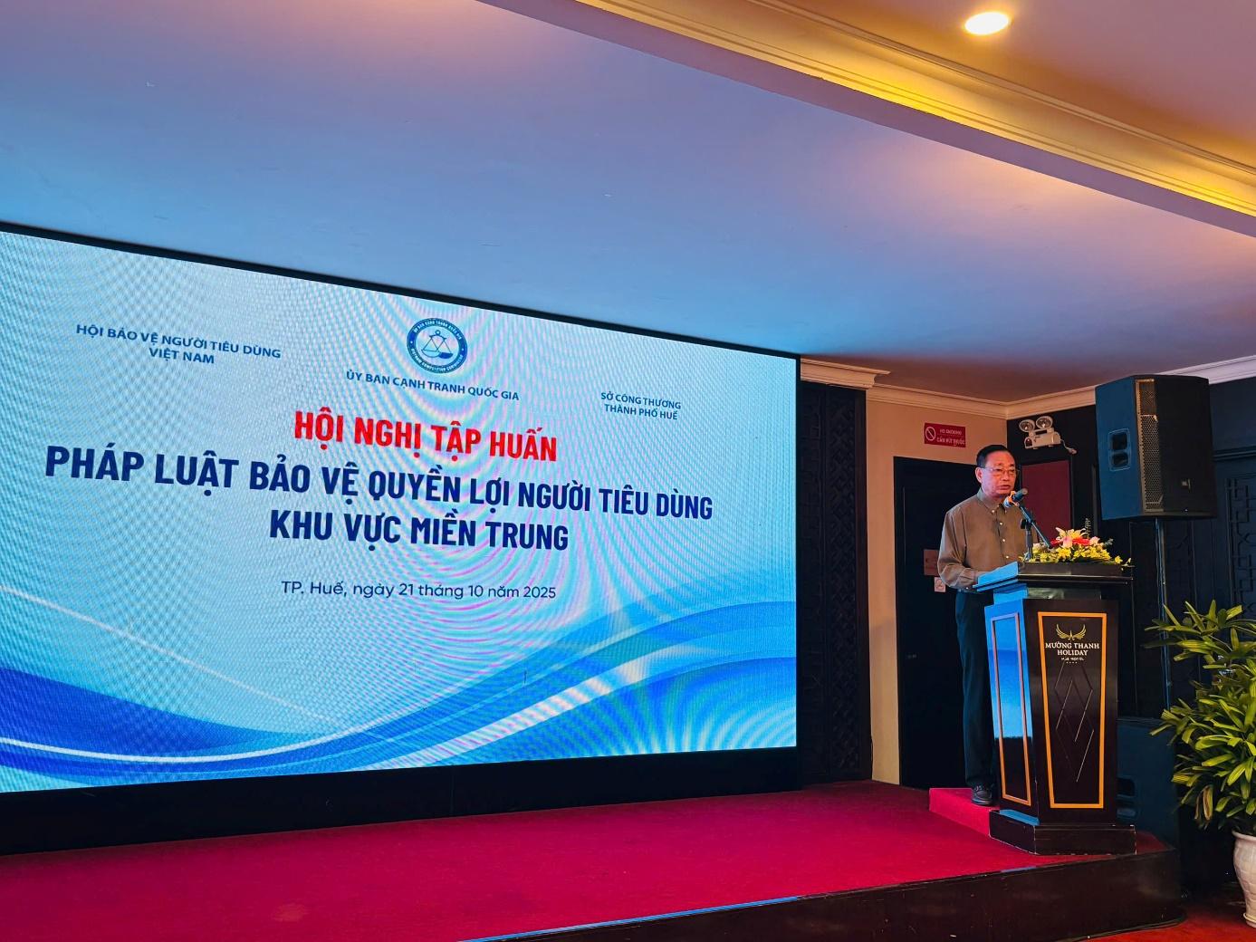 Ngày 21/10/2025, tại Thành phố Huế, Ủy ban Cạnh tranh Quốc gia đã phối hợp với Sở Công Thương TP. Huế, Hội Bảo vệ người tiêu dùng Việt Nam, tổ chức Hội nghị tập huấn pháp luật về bảo vệ quyền lợi người tiêu dùng cho các cơ quan, tổ chức có liên quan tại khu vực miền Trung và Tây Nguyên.