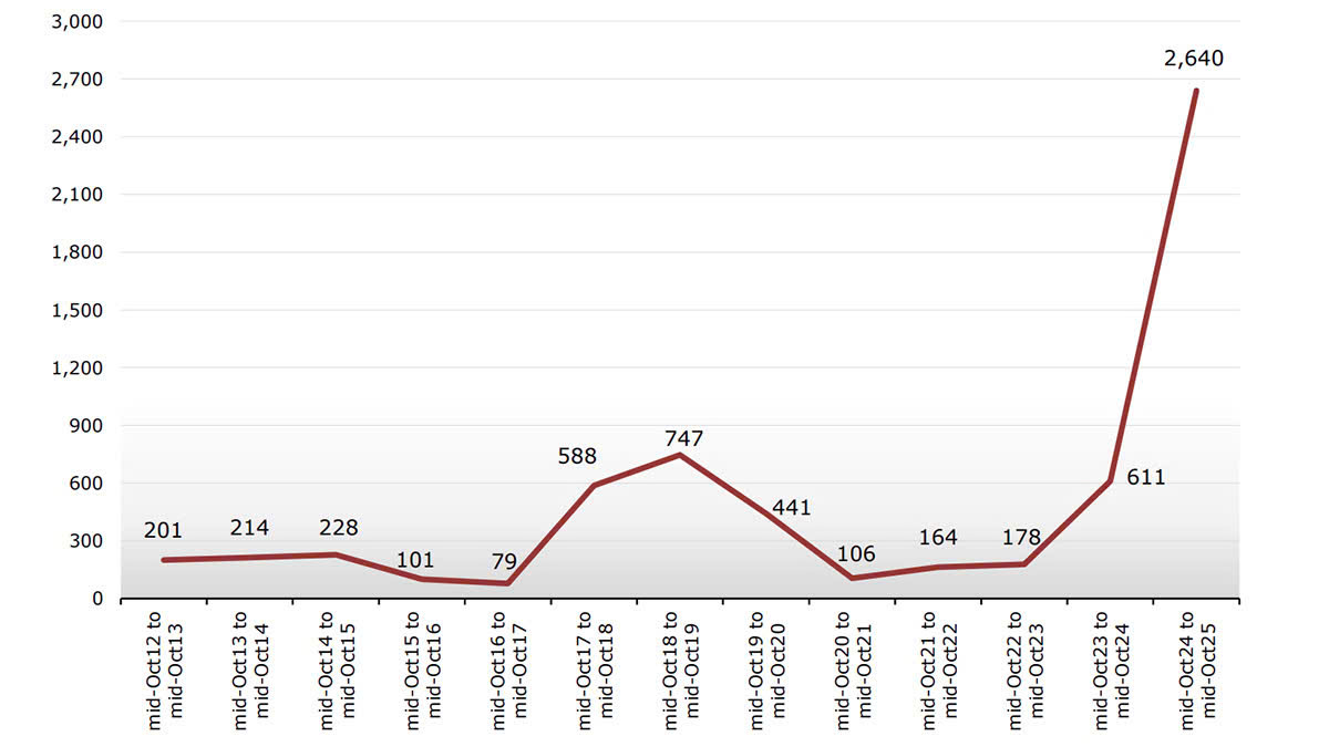 Báo cáo cho thấy, trong giai đoạn giám sát, tổng giá trị nhập khẩu hàng hóa toàn cầu chịu ảnh hưởng bởi thuế quan mới và các biện pháp nhập khẩu khác lên tới 2.640 tỷ USD (tương đương 11,1% tổng kim ngạch nhập khẩu toàn cầu), tăng hơn 4 lần so với cùng kỳ năm trước (611 tỷ USD), đánh dấu mức cao nhất trong hơn 15 năm qua. Ở chiều xuất khẩu, tổng giá trị thương mại bị tác động là khoảng 2.966 tỷ USD (tăng hơn ba lần so với mức 888 tỷ USD trong báo cáo trước).