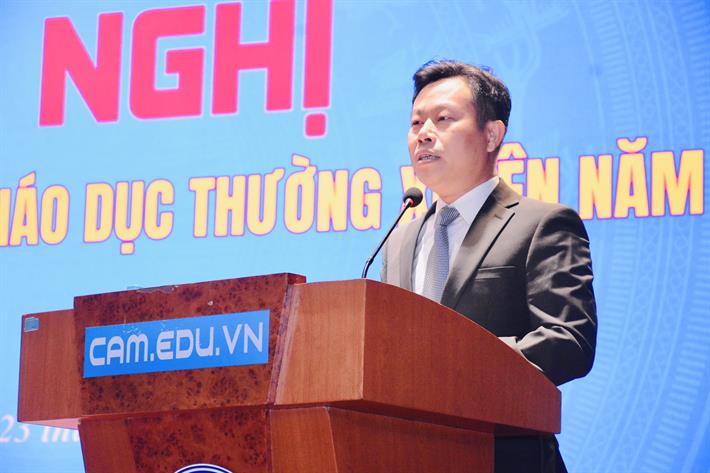 Cục trưởng Cục Giáo dục nghề nghiệp và Giáo dục thường xuyên Trương Anh Dũng báo cáo tại hội nghị