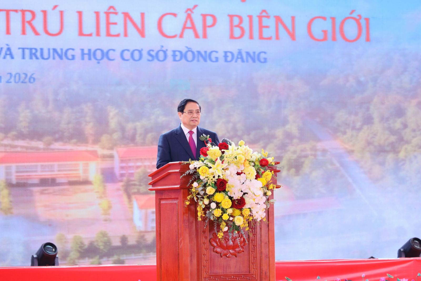 Phát biểu tại lễ khởi công, Thủ tướng Phạm Minh Chính nêu rõ, đây là sự kiện có ý nghĩa quan trọng, thể hiện sự quan tâm sâu sắc của Đảng, Nhà nước đối với sự nghiệp giáo dục vùng biên cương theo tinh thần “Cả nước hướng về biên cương, vì tương lai con em đồng bào các dân tộc”.
