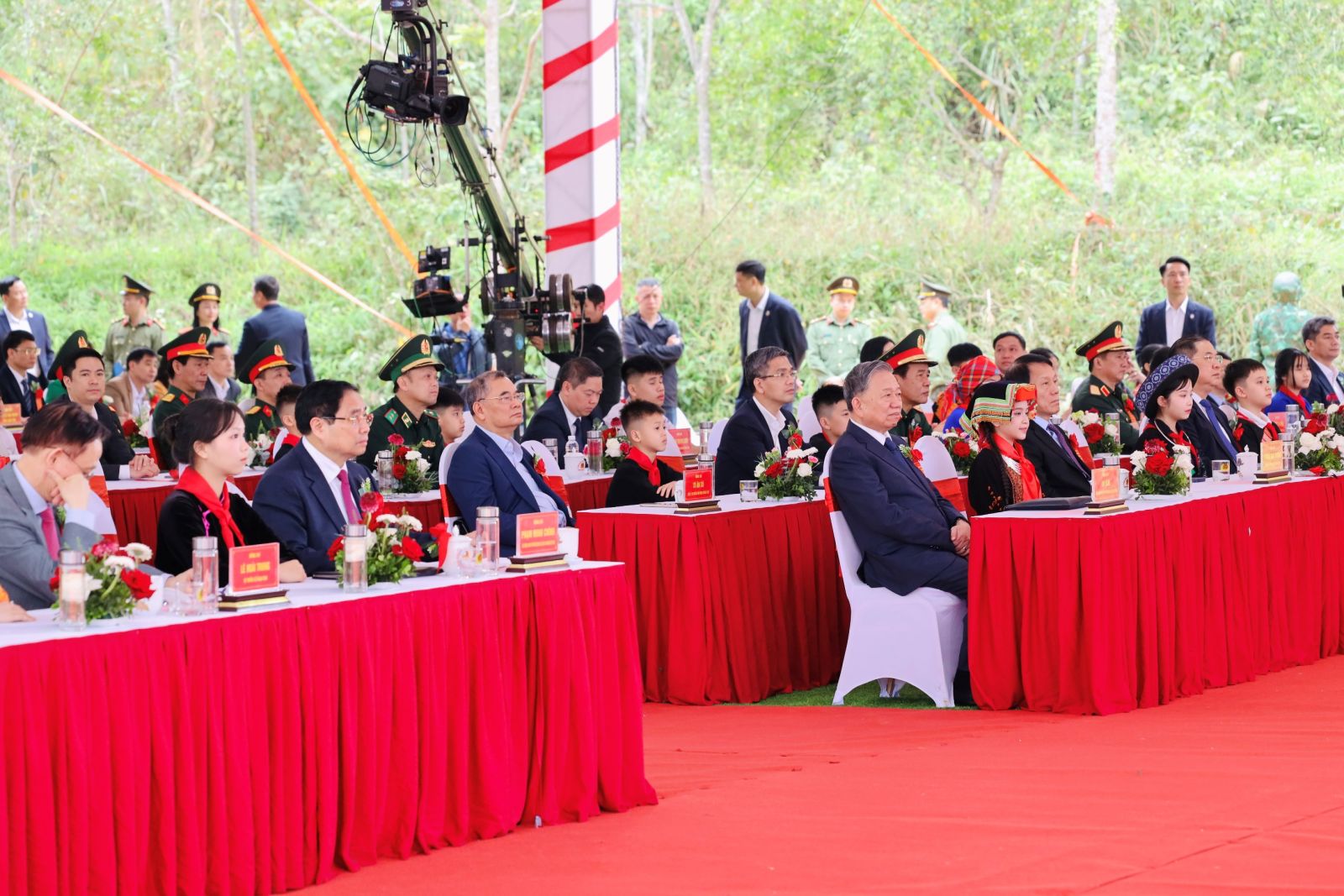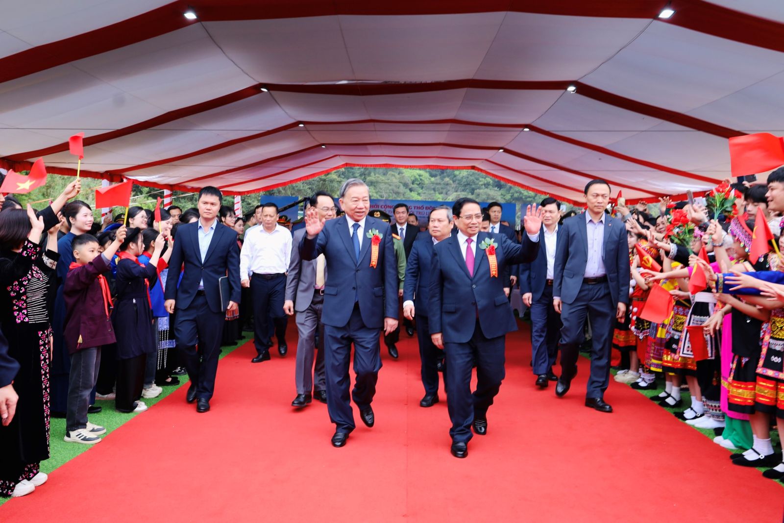 Tổng Bí thư Tô Lâm, Thủ tướng Chính phủ Phạm Minh Chính tới dự lễ khởi công tại điểm cầu chính, Trường phổ thông nội trú tiểu học và trung học cơ sở Đồng Đăng, xã Đồng Đăng, tỉnh Lạng Sơn
