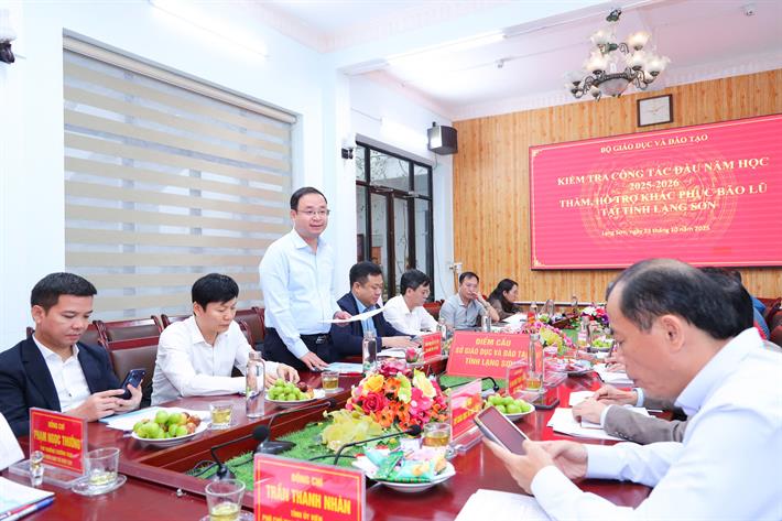 Ngày 23/10, tại Lạng Sơn, Bộ Giáo dục và Đào tạo (GDĐT) đã có buổi làm việc với ngành Giáo dục tỉnh, kiểm tra công tác đầu năm học 2025-2026 và khắc phục hậu quả thiên tai sau cơn bão số 11. Thứ trưởng Thường trực Phạm Ngọc Thưởng, Phó Chủ tịch Uỷ ban nhân dân (UBND) tỉnh Lạng Sơn Trần Thanh Nhàn đồng chủ trì buổi làm việc.