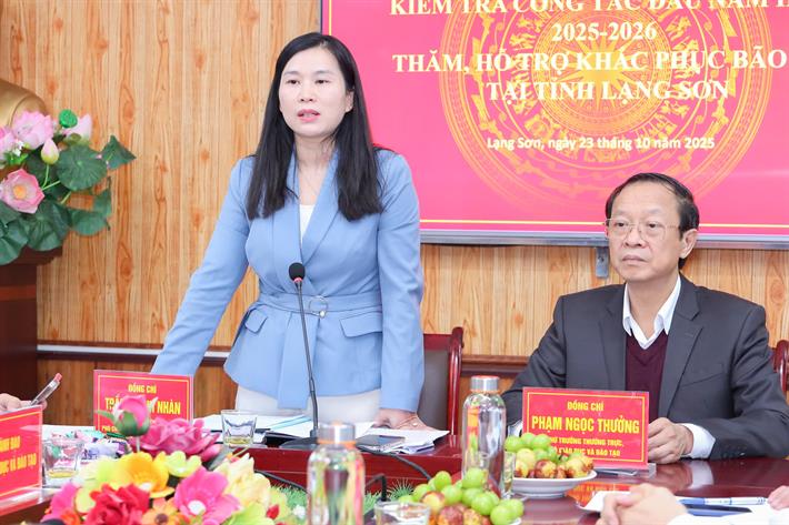 Tại buổi làm việc, Phó Chủ tịch UBND tỉnh Lạng Sơn Trần Thanh Nhàn gửi lời cảm ơn Bộ GDĐT và các đơn vị, tổ chức đã quan tâm đến ngành Giáo dục tỉnh Lạng Sơn, đặc biệt là những hỗ trợ về vật chất, tinh thần khắc phục thiệt hại do hai cơn bão gây ra. Sự quan tâm kịp thời là hành động ấm lòng đến các giáo viên, học sinh và nhân dân trên địa bàn.