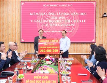 Tại buổi làm việc, Bộ GDĐT và các đơn vị đã trao 4,35 tỉ đồng hỗ trợ ngành Giáo dục tỉnh Lạng Sơn khắc phục hậu quả do thiên tai, bão lũ gây ra vừa qua.