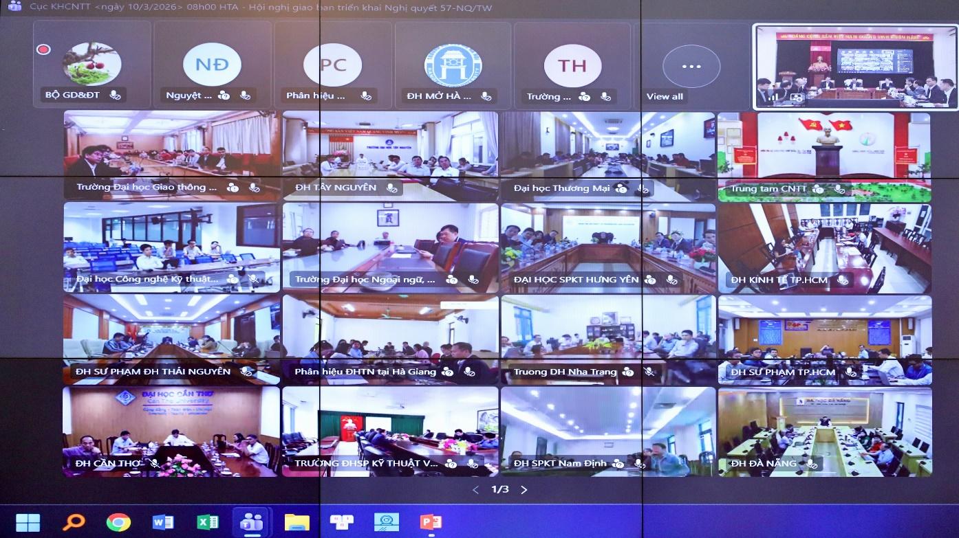 Sáng 10/3, Quyền Bộ trưởng Hoàng Minh Sơn và Thứ trưởng Nguyễn Văn Phúc đã làm việc với các cơ sở giáo dục đại học trực thuộc Bộ Giáo dục và Đào tạo (GDĐT) về tình hình triển khai Nghị quyết số 57-NQ/TW ngày 22/12/2024 của Bộ Chính trị về đột phá phát triển khoa học, công nghệ, đổi mới sáng tạo và chuyển đổi số quốc gia (Nghị quyết 57).