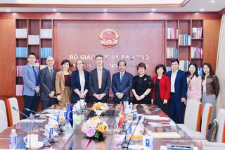 Tại buổi làm việc giữa Bộ GDĐT với đại diện Liên minh Châu Âu (EU) tại Việt Nam, hai Bên tập trung trao đổi về tiến độ đàm phán Hiệp định Tài chính dự án “Chương trình hợp tác Việt Nam - EU về giáo dục nghề nghiệp” (VETVET). Bộ GDĐT cho biết văn kiện dự án đã được phê duyệt; dự thảo Hiệp định Tài chính đã lấy ý kiến các bộ, ngành và hiện đang được Bộ Tư pháp thẩm định. Hai Bên thống nhất tiếp tục trao đổi, phối hợp chặt chẽ để sớm trình Chính phủ và hướng tới mục tiêu hoàn tất việc kí kết Hiệp định Tài chính trước 31/12/2025, tạo cơ sở triển khai dự án trong thời gian tới.