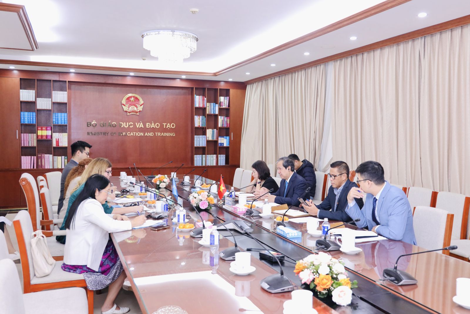 Tại buổi làm việc, hai Bên đã trao đổi về các ưu tiên hợp tác trong thời gian tới, tập trung nâng cao chất lượng và công bằng giáo dục; thúc đẩy chuyển đổi số, xây dựng hệ thống dữ liệu giáo dục; hỗ trợ sức khỏe tâm lí học đường; phát triển mô hình trường học an toàn, thích ứng với biến đổi khí hậu; tăng cường bình đẳng giới và phát triển kĩ năng cho học sinh phù hợp Chương trình GDPT 2018.