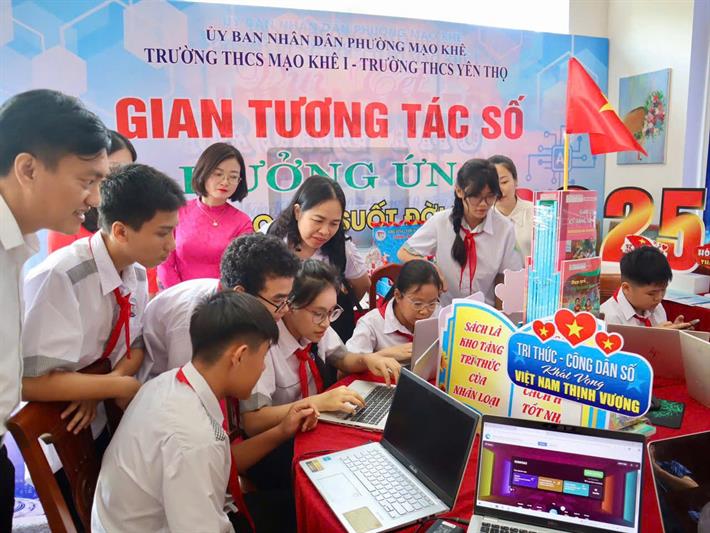 Giáo viên, học sinh phường Mạo Khê ứng dụng công nghệ số tại Lễ khai mạc Tuần lễ hưởng ứng học tập suốt đời tỉnh Quảng Ninh
