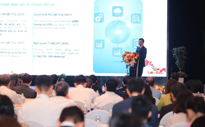 Phát biểu tại Diễn đàn, ông Nguyễn Phú Tiến, Quyền Cục trưởng Cục CĐS Quốc gia (Bộ KH&CN), nhấn mạnh: "CĐS không chỉ là xu thế, mà là đột phá chiến lược để Việt Nam bứt phá và vươn lên". Trong những năm qua, Đảng đã ban hành nhiều định hướng quan trọng, nổi bật là Nghị quyết số 52-NQ/TW về tham gia Cách mạng công nghiệp 4.0 và đặc biệt là Nghị quyết số 57-NQ/TW xác định CĐS là một trong ba đột phá chiến lược. Nghị quyết đặt mục tiêu đến năm 2030, kinh tế số đạt tối thiểu 30% GDP và đến năm 2045, con số này đạt tối thiểu 50%, đưa Việt Nam vào nhóm 30 quốc gia dẫn đầu về ĐMST&CĐS.