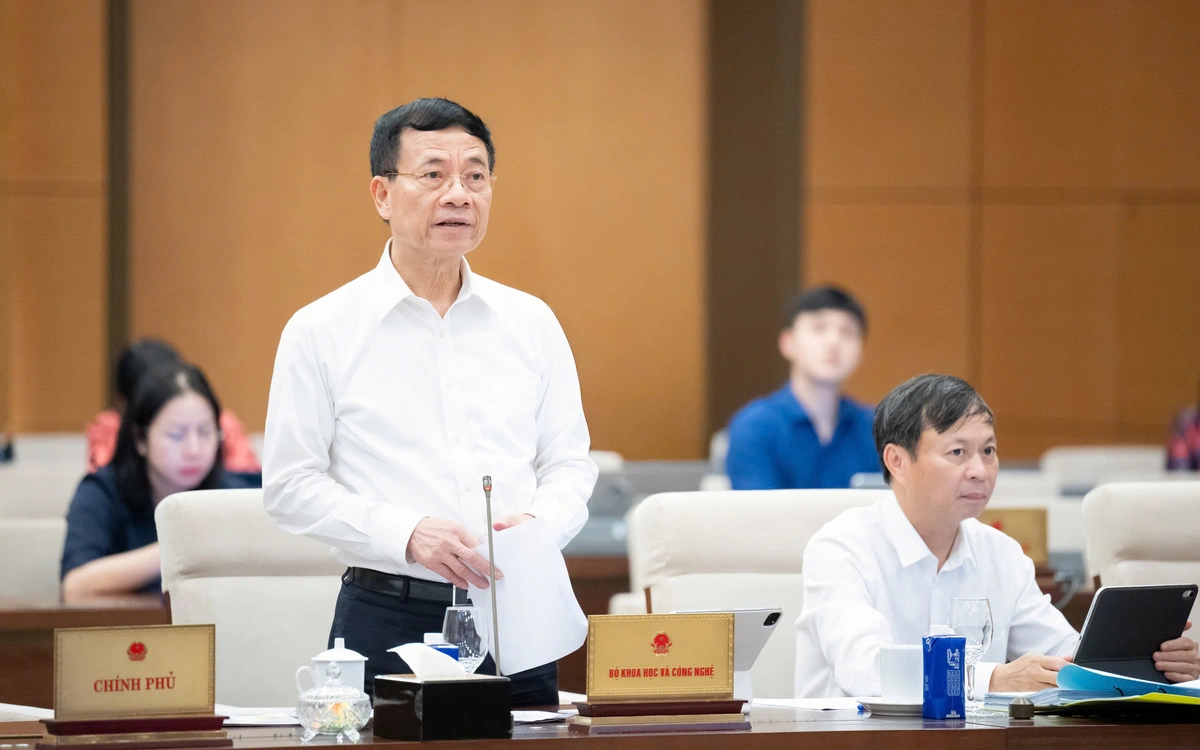 Bộ trưởng Bộ Khoa học và Công nghệ Nguyễn Mạnh Hùng trình bày Tờ trình dự án Luật sửa đổi, bổ sung một số điều của dự án Luật Chuyển giao công nghệ. (Ảnh: Vũ Hiếu)