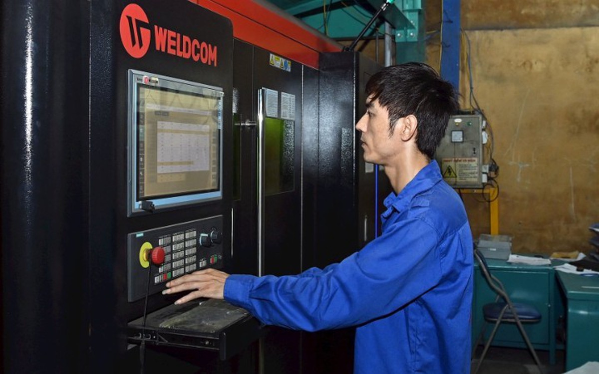 Vận hành dây chuyền gia công cơ khí tại Công ty Tomerco An Khang, Cụm công nghiệp Ngọc Liệp (Hà Nội). (Ảnh TUỆ NGHI)