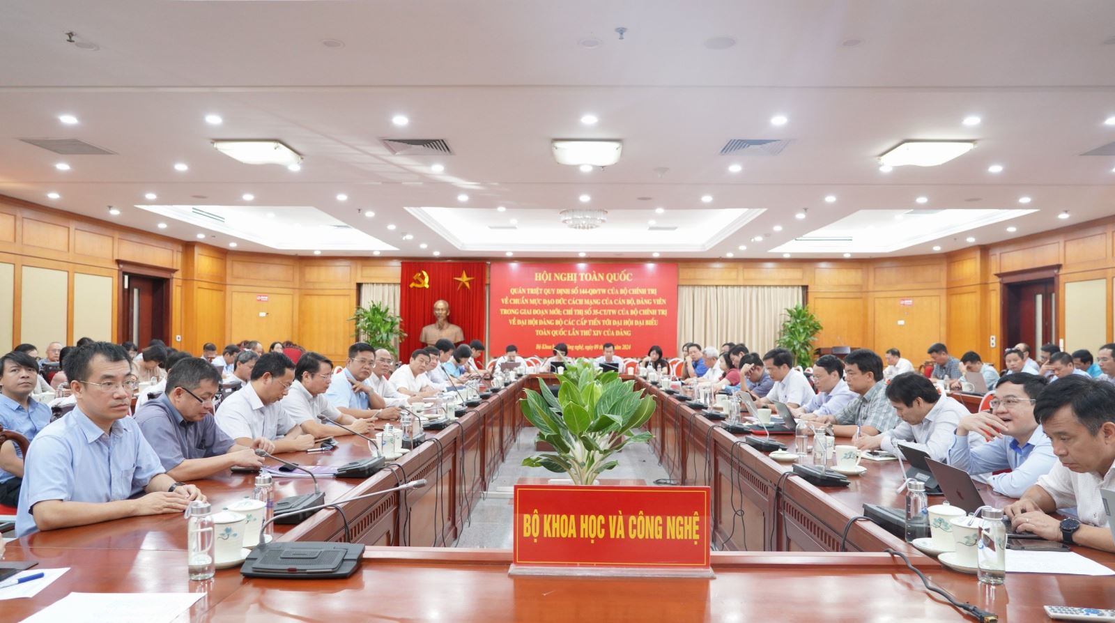 Ngày 9/7/2024, Bộ Chính trị, Ban Bí thư tổ chức Hội nghị toàn quốc quán triệt Quy định số 144-QĐ/TW của Bộ Chính trị về chuẩn mực đạo đức cách mạng của cán bộ, đảng viên trong giai đoạn mới; Chỉ thị số 35-CT/TW của Bộ Chính trị về Đại hội đảng bộ các cấp tiến tới Đại hội đại biểu toàn quốc lần thứ XIV của Đảng. Tại điểm cầu Bộ Khoa học và Công nghệ (KH&CN), có sự tham dự của đồng chí Lê Xuân Định, Bí thư Đảng ủy Bộ, Thứ trưởng Bộ KH&CN; đồng chí Phạm Gia Chương, Phó Bí thư Đảng ủy Bộ.