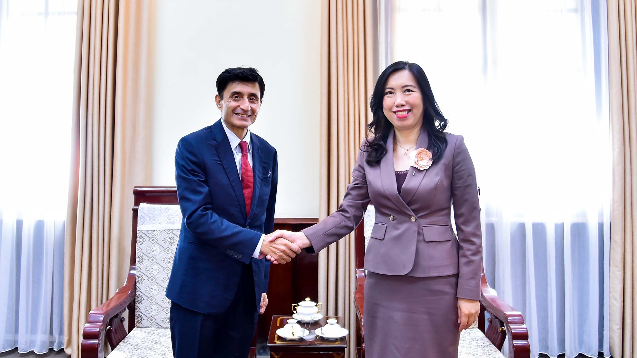 | Thứ trưởng Ngoại giao Lê Thị Thu Hằng tiếp ông Faisal Shahkar, Cố vấn cảnh sát Liên hợp quốc nhân dịp thăm làm việc tại Việt Nam. (Ảnh: Quang Hòa) |