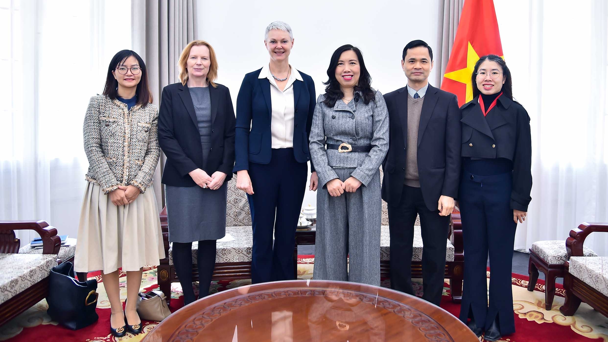 Phát biểu tại cuộc tiếp, Đại sứ Hilde Solbakken bày tỏ nhất trí với các đánh giá tích cực, phương hướng và biện pháp thúc đẩy hợp tác song phương mà Thứ trưởng Lê Thị Thu Hằng đề xuất.