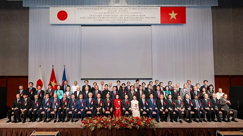 Tối 25/9, tại thành phố Fukuoka (Nhật Bản) đã diễn ra Lễ kỷ niệm 80 năm Quốc khánh nước CHXHCN Việt Nam (1945–2025) và 15 năm thành lập Tổng Lãnh sự quán Việt Nam tại Fukuoka (2009–2025). Đây là sự kiện đối ngoại và cộng đồng có ý nghĩa đặc biệt, quy tụ lãnh đạo cấp cao, chính quyền địa phương, bạn bè Nhật Bản và hơn 50.000 bà con kiều bào đang sinh sống, học tập và làm việc tại khu vực Kyushu.