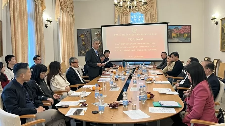 Ngày 8/11, Đảng ủy, Đại sứ quán Việt Nam tại Đức đã tổ chức Tọa đàm “Lấy ý kiến đóng góp của đội ngũ trí thức, doanh nhân, kiều bào người Việt Nam tại Đức vào Dự thảo Văn kiện Đại hội XIV của Đảng”.