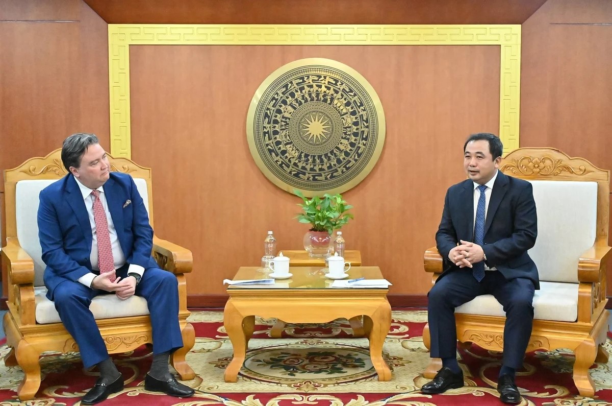 Đại sứ Marc Knapper trong cuộc làm việc với Bộ trưởng Trần Đức Thắng ngày 16/1. Ảnh: Kiều Chi.