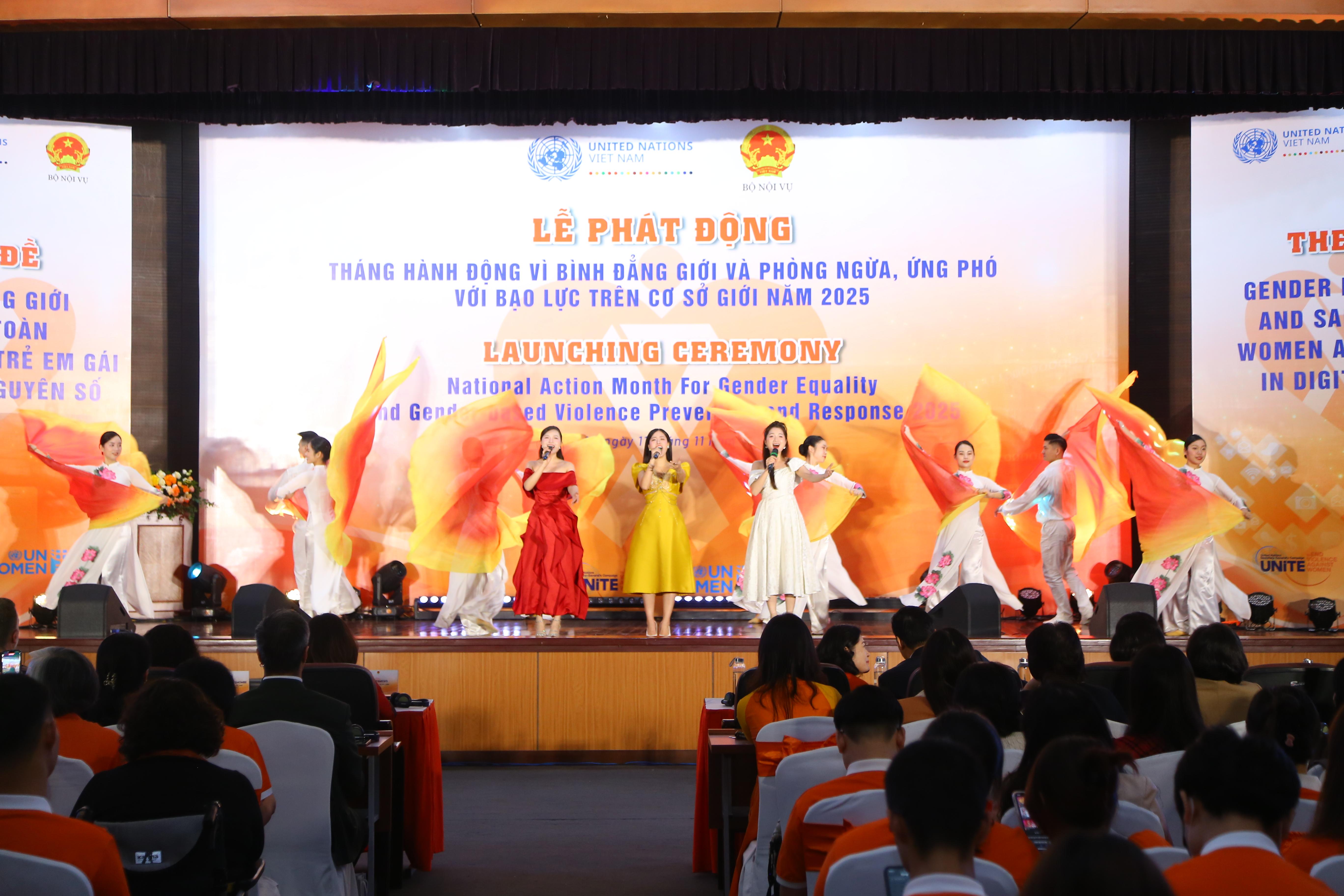 Sáng này 11/11/2025, Bộ Nội vụ chủ trì, phối hợp với Cơ quan Liên hợp quốc về bình đẳng giới và trao quyền cho phụ nữ (UN Women) tổ chức Lễ phát động Tháng hành động vì bình đẳng giới và phòng ngừa, ứng phó với bạo lực trên cơ sở giới năm 2025 với Chủ đề “Bình đẳng giới và an toàn cho phụ nữ và trẻ em gái trong kỷ nguyên số”.