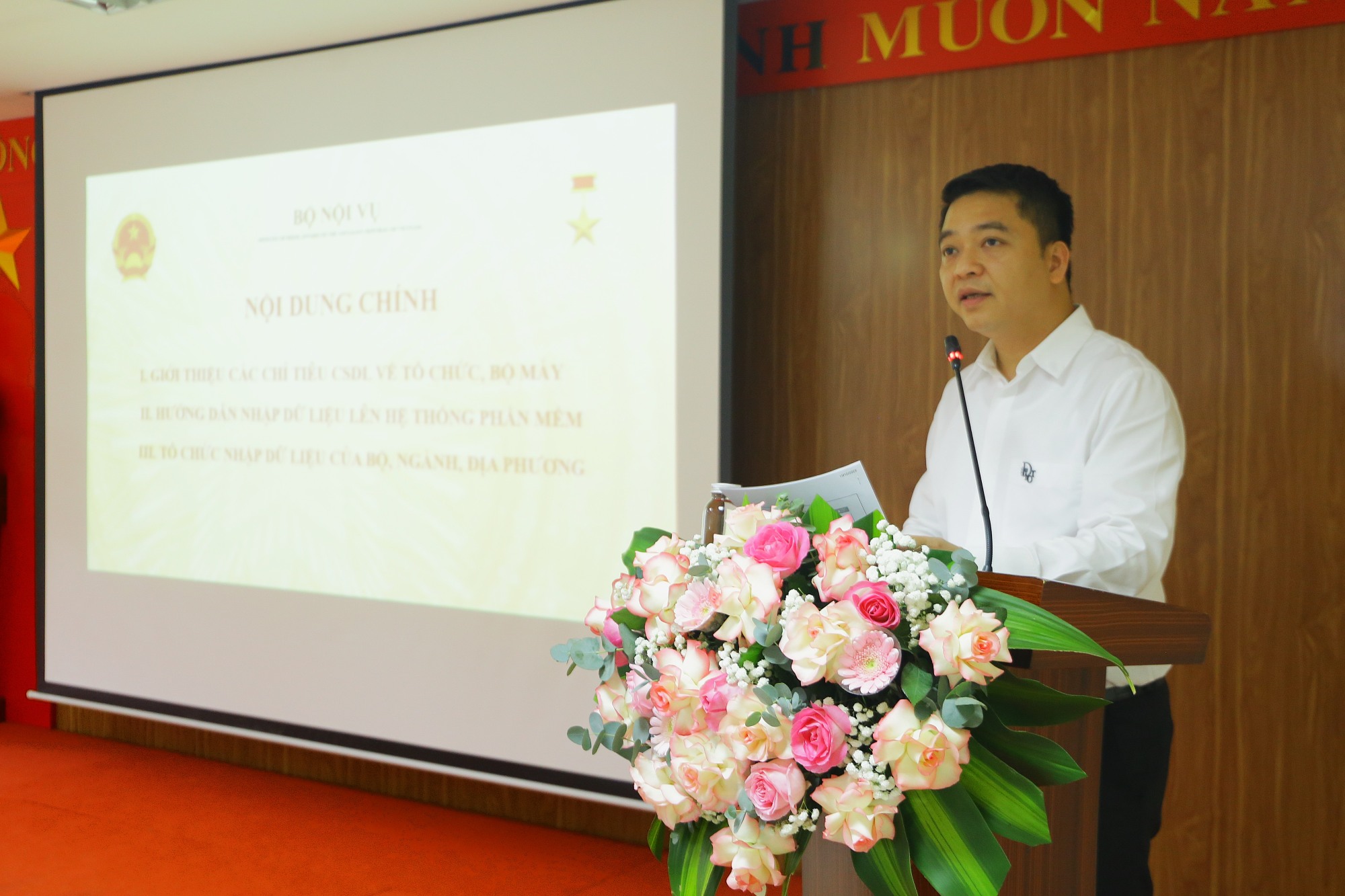 Phát biểu chỉ đạo tại Lễ khai mạc, Thứ trưởng Vũ Chiến Thắng nhấn mạnh, việc xây dựng cơ sở dữ liệu về tổ chức, bộ máy là nhiệm vụ quan trọng, nhằm thực hiện các chủ trương lớn của Đảng và Chính phủ. Đây là bước đi cụ thể hóa Nghị quyết số 57-NQ/TW ngày 22/12/2024 của Bộ Chính trị về đột phá phát triển khoa học, công nghệ, đổi mới sáng tạo và chuyển đổi số quốc gia; Kế hoạch số 02-KH/BCĐTW ngày 19/6/2025 của Ban Chỉ đạo Trung ương; và Kế hoạch số 6428/KH-BNV của Bộ Nội vụ thực hiện Nghị quyết của Chính phủ về thúc đẩy tạo lập dữ liệu phục vụ chuyển đổi số toàn diện của Bộ, và thực hiện Quyết định số 1138/QĐ-BNV ngày 03/10/2025 của Bộ trưởng Bộ Nội vụ.