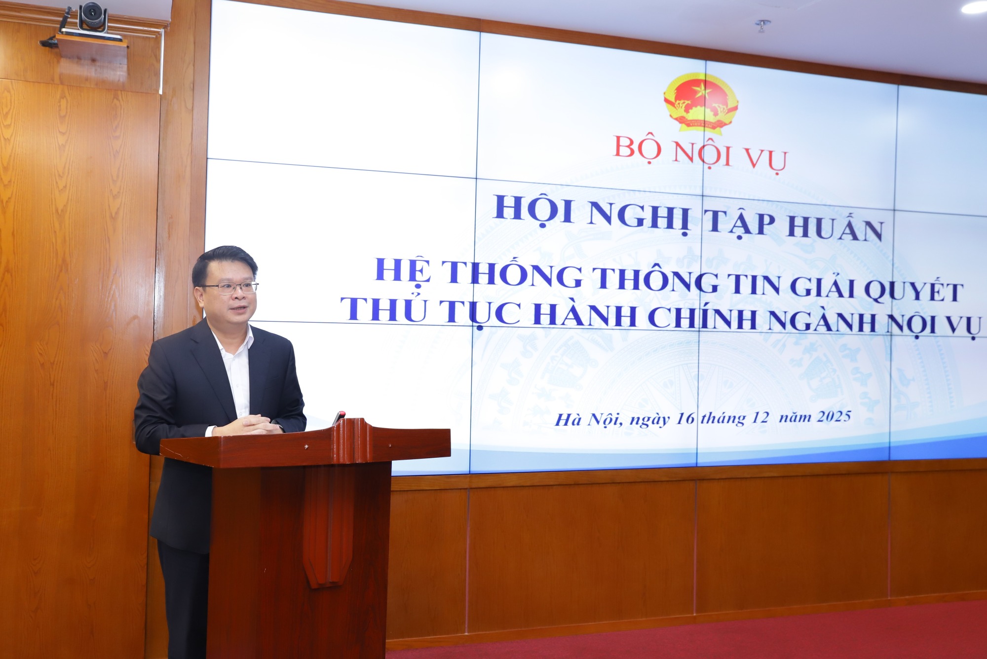 Sáng ngày 16/12/2025, Bộ Nội vụ đã tổ chức Hội nghị tập huấn, hướng dẫn sử dụng Hệ thống thông tin giải quyết thủ tục hành chính (TTHC) thống nhất, dùng chung cho toàn ngành Nội vụ dưới hình thức trực tiếp kết hợp trực tuyến. Điểm cầu chính tại Trụ sở Bộ Nội vụ, kết nối trực tuyến đến các điểm cầu tại Sở Nội vụ 34 tỉnh, thành phố trực thuộc Trung ương và các điểm cầu tại xã/phường trên phạm vi cả nước.