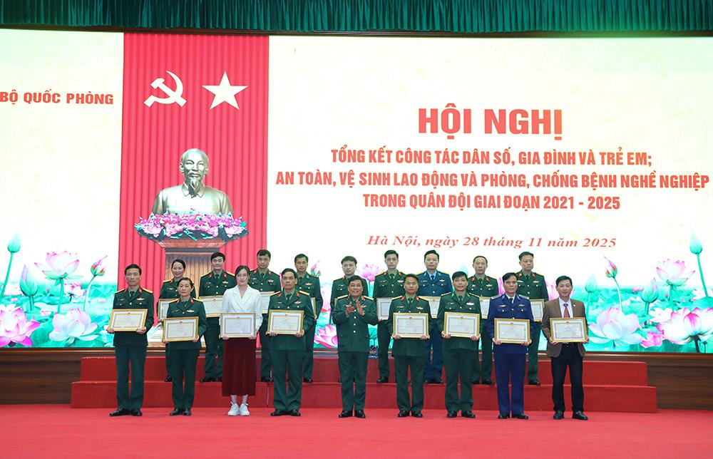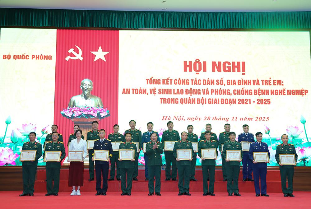 Nhân dịp này, Bộ Quốc phòng đã trao Bằng khen tặng các tập thể, cá nhân có thành tích xuất sắc trong tổ chức thực hiện công tác DSGĐ&TE giai đoạn 2021 - 2025; các tập thể, cá nhân có thành tích xuất sắc trong công tác ATVSLĐ và phòng, chống bệnh nghề nghiệp trong Quân đội giai đoạn 2021 - 2025.