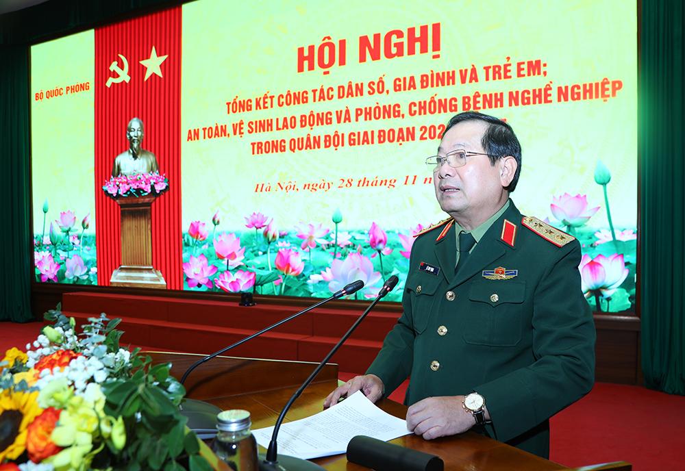 Phát biểu chỉ đạo tại hội nghị, Thượng tướng Lê Huy Vịnh yêu cầu các cơ quan, đơn vị, Ủy Ban DSGĐ&TE, Ban Chỉ đạo ATVSLĐ và phòng, chống bệnh nghề nghiệp các cấp thường xuyên làm tốt công tác tuyên truyền, phổ biến, giáo dục pháp luật về DSGĐ&TE, ATVSLĐ và phòng, chống bệnh nghề nghiệp. Chỉ đạo, hướng dẫn, kiểm tra, giám sát việc thực hiện các chủ trương của Đảng, chính sách, pháp luật của Nhà nước, quy định của Bộ Quốc phòng; kết hợp chặt chẽ giữa chủ động phòng ngừa với phát hiện, xử lý nghiêm vi phạm về DSGĐ&TE, ATVSLĐ và phòng, chống bệnh nghề nghiệp. Quá trình triển khai thực hiện các nhiệm vụ phải tổ chức chỉ huy chặt chẽ, cụ thể, tỉ mỉ, tuân thủ đúng quy trình, quy định. Đồng thời, thường xuyên kiện toàn, xây dựng quy chế, chương trình hoạt động Ủy ban DSGĐ&TE, Ban Chỉ đạo ATVSLĐ và phòng, chống bệnh nghề nghiệp bảo đảm hiệu lực, hiệu quả. Phối hợp chặt chẽ với các cơ quan chức năng của Nhà nước và Quân đội tham mưu, đề xuất ban hành, bổ sung, quán triệt, phổ biến, hướng dẫn thống nhất trong toàn quân và đến trực tiếp người lao động các văn bản quy phạm, quy định về DSGĐ&TE, ATVSLĐ và phòng, chống bệnh nghề nghiệp phù hợp với quy định của pháp luật và đặc thù lĩnh vực quân sự.