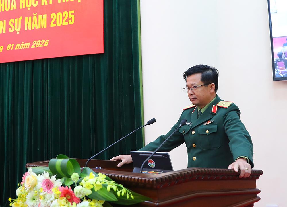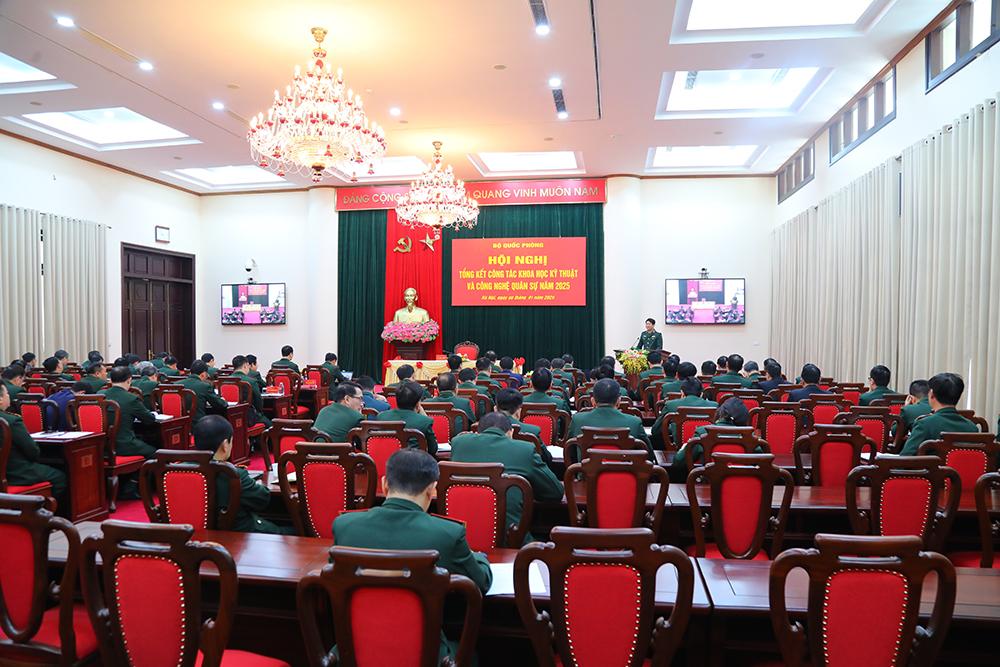 Báo cáo tại hội nghị đánh giá, trong năm 2025, công tác khoa học kỹ thuật và công nghệ quân sự toàn quân được triển khai toàn diện, đồng bộ, bám sát các nghị quyết của Đảng, Quân ủy Trung ương, các chỉ thị của Bộ Quốc phòng, đáp ứng yêu cầu nhiệm vụ quân sự, quốc phòng. Nổi bật là đã tổ chức triển khai các kế hoạch của Bộ Quốc phòng. Xây dựng danh mục các sản phẩm vũ khí trang bị kỹ thuật có ý nghĩa chiến lược ưu tiên triển khai nghiên cứu, các đề tài nghiên cứu cơ bản, nghiên cứu công nghệ nền, công nghệ lõi; các nhiệm vụ sản xuất loạt “O”; các dự án đầu tư tiềm lực và các dự án, nhiệm vụ chuyển đổi số giai đoạn 2025 - 2030. Tổ chức tư vấn, xét duyệt, thẩm định kinh phí các đề tài nghiên cứu vũ khí trang bị kỹ thuật có ý nghĩa chiến lược.
