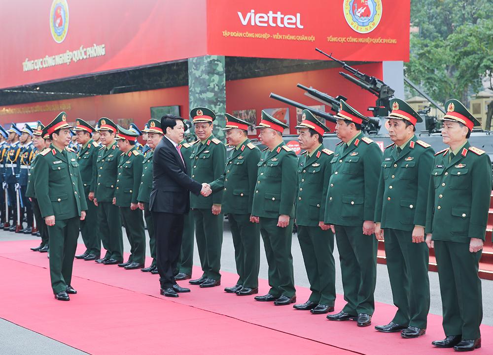 Chủ tịch nước Lương Cường tham quan khu trưng bày tại hội nghị.