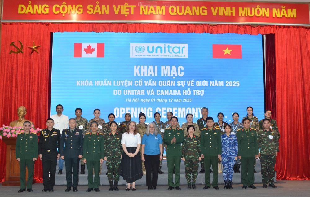 (Bqp.vn) - Trưa 1/12, tại Hà Nội, Cục Gìn giữ hòa bình (GGHB) Việt Nam đã tổ chức Khai mạc Khóa huấn luyện Cố vấn quân sự về giới năm 2025 do Viện Nghiên cứu và Đào tạo Liên hợp quốc (UNITAR) và Ca-na-đa hỗ trợ. Thiếu tướng Phạm Mạnh Thắng, Cục trưởng Cục GGHB Việt Nam dự và phát biểu khai mạc khóa huấn luyện.