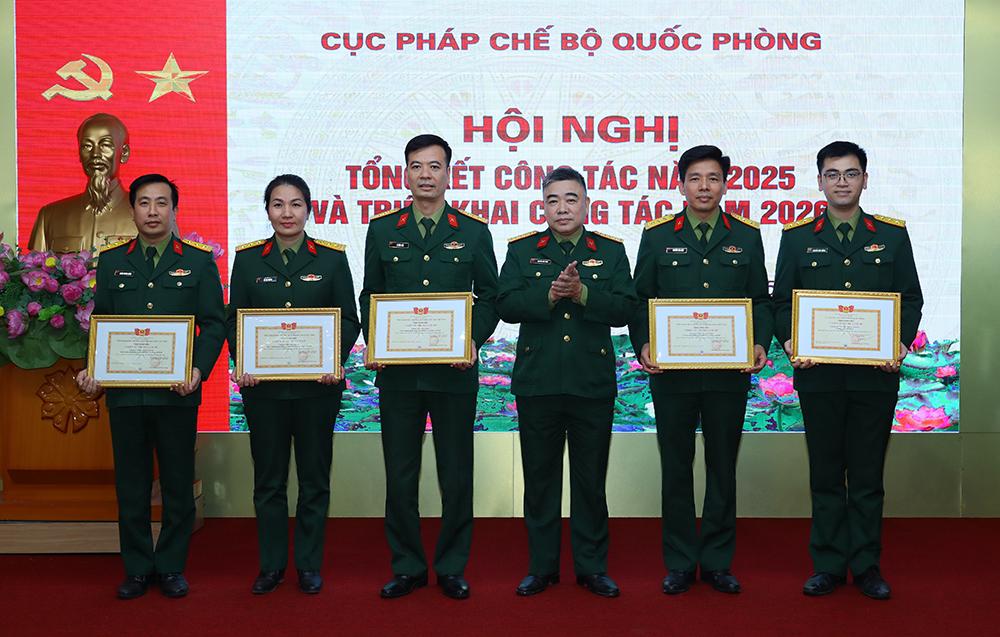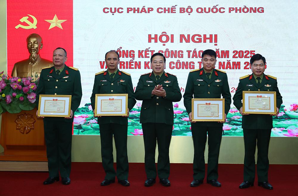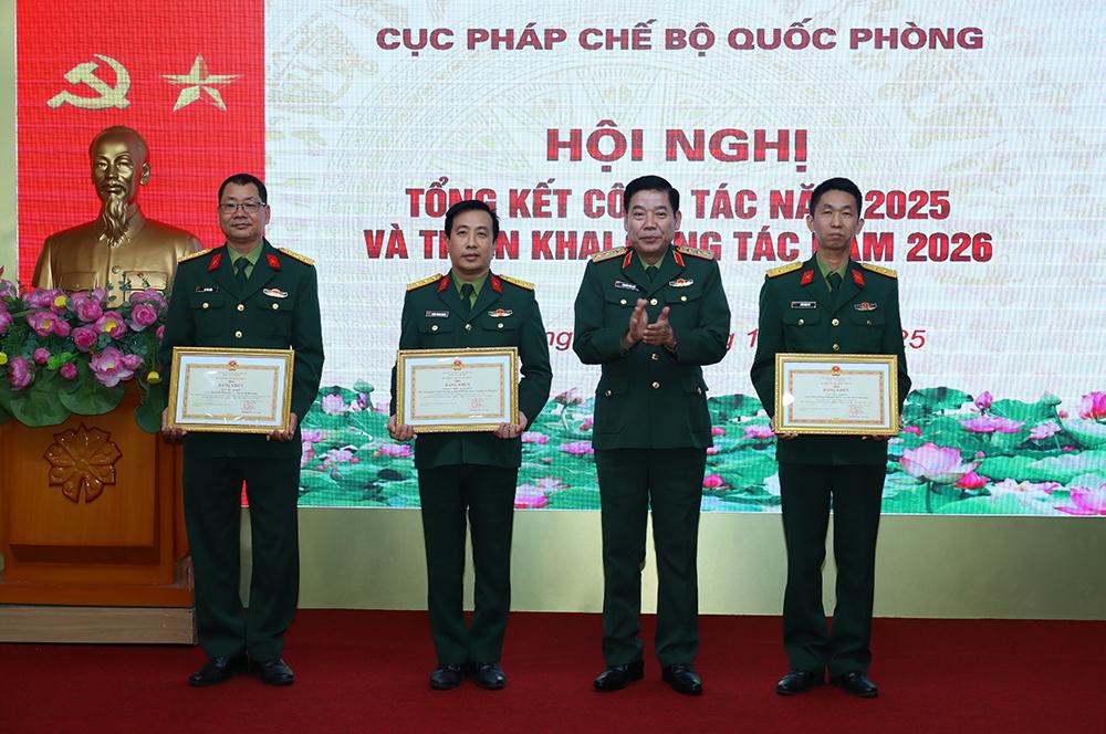 Lãnh đạo Cục Pháp chế Bộ Quốc phòng tặng Bằng khen cho các tập thể và cá nhân có thành tích xuất sắc trong thực hiện nhiệm vụ năm 2025.