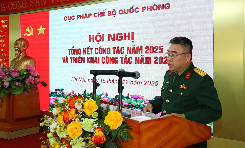 Báo cáo tại hội nghị khẳng định, năm 2025, Cục Pháp chế Bộ Quốc phòng đã quán triệt sâu sắc các chỉ thị, nghị quyết của cấp trên; thực hiện tốt chức năng tham mưu, giúp Quân ủy Trung ương, Bộ trưởng Bộ Quốc phòng trong công tác xây dựng, hoàn thiện thể chế, pháp luật về quân sự, quốc phòng, cơ yếu; tham mưu giúp Bộ trưởng Bộ Quốc phòng quản lý nhà nước về lĩnh vực quân sự, quốc phòng, cơ yếu bằng pháp luật, góp phần xây dựng Quân đội cách mạng, chính quy, tinh nhuệ, hiện đại, đáp ứng yêu cầu bảo vệ Tổ quốc trong giai đoạn mới.