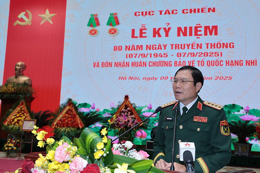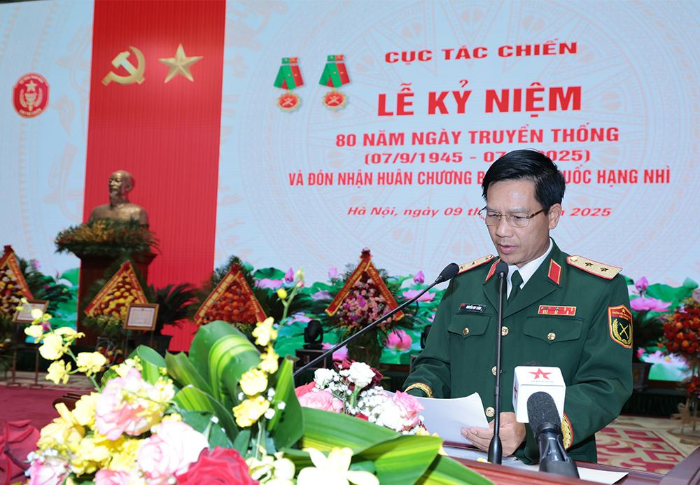 Trình bày diễn văn tại buổi lễ, Trung tướng Nguyễn Huy Cảnh, Cục trưởng Cục Tác chiến nhấn mạnh, cách đây 80 năm, ngay trong những ngày đầu của nền độc lập non trẻ, trước yêu cầu cấp bách của tình hình, ngày 7/9/1945, Chủ tịch Hồ Chí Minh ký Sắc lệnh thành lập Bộ Tổng Tham mưu để giúp Trung ương Đảng và Chính phủ lãnh đạo, chỉ huy các lực lượng vũ trang bảo vệ thành quả cách mạng và chỉ định đồng chí Hoàng Văn Thái làm Tổng Tham mưu trưởng, kiêm Trưởng Phòng Tác chiến. Sự ra đời của Bộ Tổng Tham mưu trong đó có Phòng Tác chiến - tiền thân của Cục Tác chiến ngày nay đánh dấu bước phát triển vượt bậc về tổ chức chỉ huy của QĐND Việt Nam.