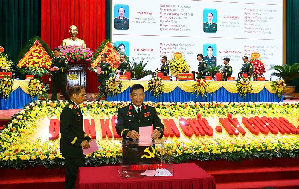 Các đại biểu bỏ phiếu bầu Ban Chấp hành Đảng bộ Học viện Quốc phòng nhiệm kỳ 2025 -2030.
