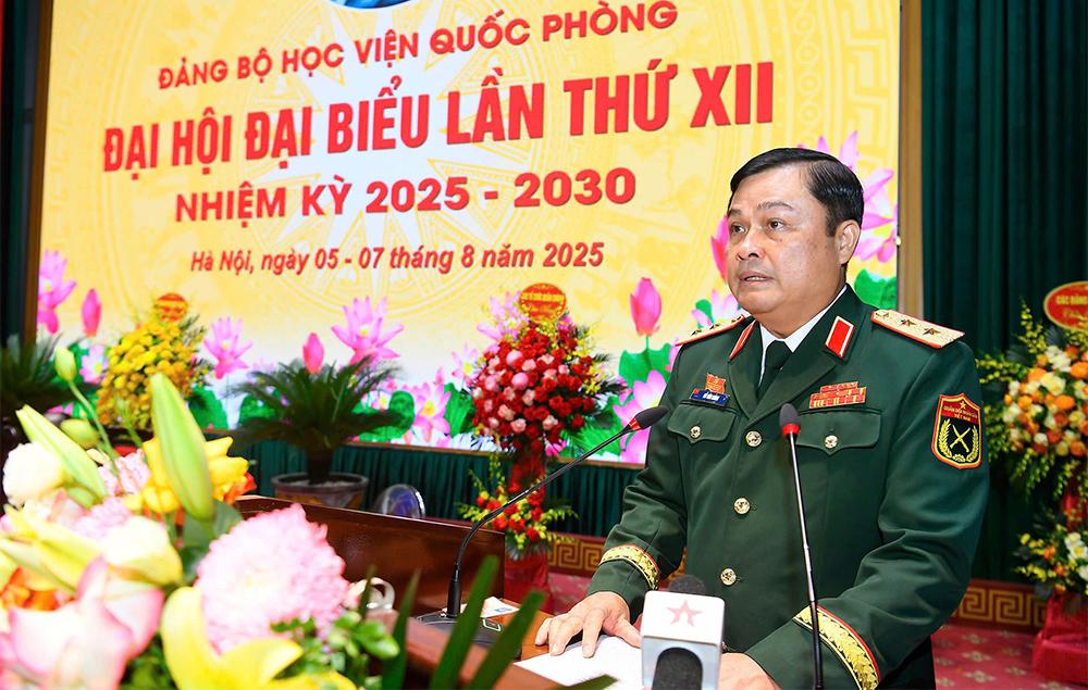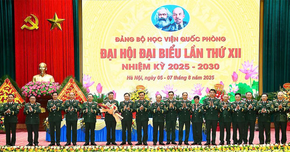 (Bqp.vn) - Sáng 6/8, tại Hà Nội, Đảng bộ Học viện Quốc phòng khai mạc phiên chính thức Đại hội đại biểu lần thứ XII, nhiệm kỳ 2025 - 2030. Đại tướng Nguyễn Tân Cương, Ủy viên Trung ương Đảng, Ủy viên Thường vụ Quân ủy Trung ương, Tổng Tham mưu trưởng QĐND Việt Nam, Thứ trưởng Bộ Quốc phòng dự, chỉ đạo đại hội.