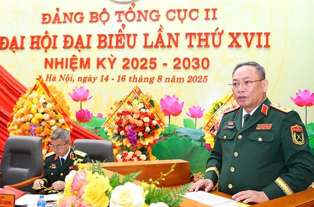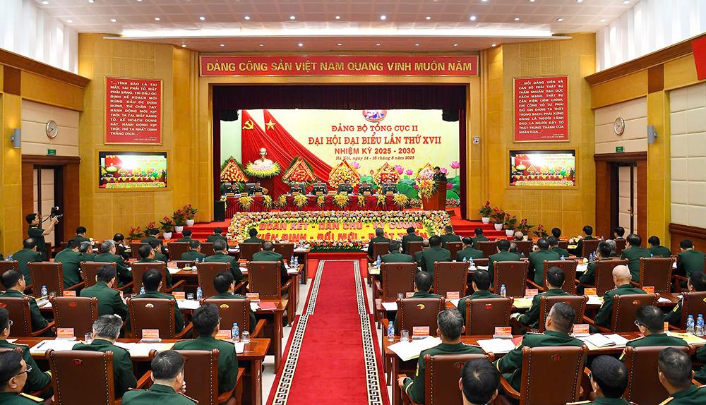 Với phương châm “Đoàn kết - dân chủ - kỷ cương - kiên định - đổi mới - phát triển” và chủ đề “Phát huy truyền thống đơn vị Anh hùng, xây dựng Đảng bộ trong sạch, vững mạnh; Tổng cục vững mạnh toàn diện “Mẫu mực, tiêu biểu” xuất sắc, xứng đáng là “tai tỏ, mắt sáng”, lực lượng trọng yếu, đặc biệt tin cậy, tuyệt đối trung thành của Đảng, Nhà nước và Quân đội”, Đại hội Đảng bộ Tổng cục II lần thứ XVII, nhiệm kỳ 2025 - 2030 đã tập trung thảo luận, đóng góp ý kiến vào dự thảo Văn kiện Đại hội XIV của Đảng và dự thảo Văn kiện Đại hội Đảng bộ Quân đội lần thứ XII; đồng thời nghiêm túc đánh giá kết quả lãnh đạo thực hiện Nghị quyết Đại hội nhiệm kỳ 2020 - 2025, đề xuất nhiều mục tiêu, chỉ tiêu và giải pháp cho nhiệm kỳ tới.