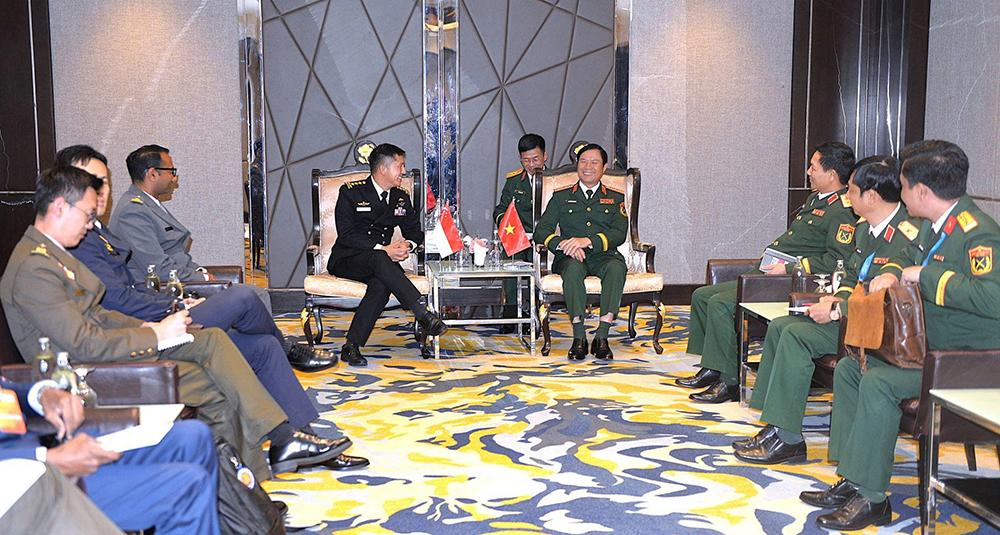 Hoan nghênh cơ quan chức năng hai bên thúc đẩy, đàm phán, ký kết Bản ghi nhớ về hợp tác an ninh mạng và triển khai tiếp nhận sĩ quan của Bộ Tư lệnh Tác chiến không gian mạng Việt Nam công tác tại Trung tâm thông tin và an ninh mạng ADMM của Xinh-ga-po, Đại tướng Nguyễn Tân Cương mong muốn hai bên tiếp tục tham vấn và ủng hộ nhau trong diễn đàn về quốc phòng, an ninh đa phương trong ASEAN và các sự kiện quốc tế do mỗi bên tổ chức, đặc biệt là tại Hội nghị ADMM và ADMM+ tại Ma-lai-xi-a sắp tới. Bộ Quốc phòng Việt Nam tiếp tục ủng hộ việc tổ chức Đối thoại Shangri-La như thời gian qua.