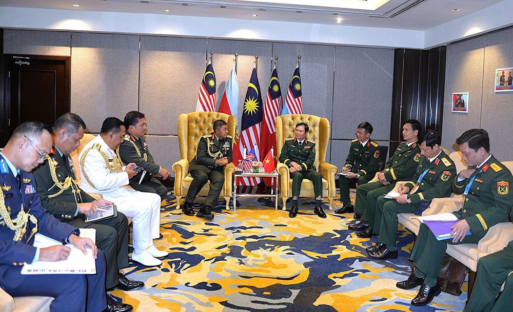 Đại tướng Nguyễn Tân Cương gặp Tư lệnh Lực lượng Quốc phòng Ma-lai-xi-a.