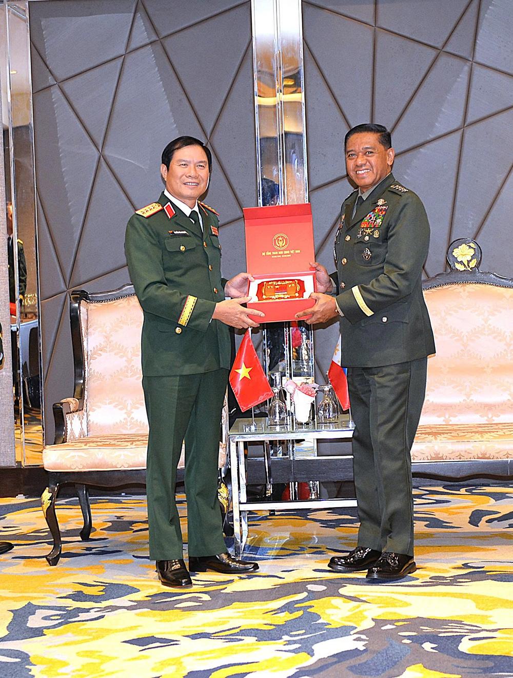 Đại tướng Nguyễn Tân Cương gặp Tham mưu trưởng Lực lượng vũ trang Phi-líp-pin.